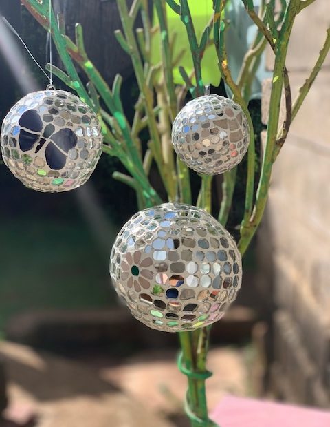 These are beautiful decorative pieces you can hang indoors or outdoors. They are handmade from paper-mâché then we engrave them with glass to give it a unique and beautiful finish.
